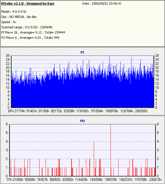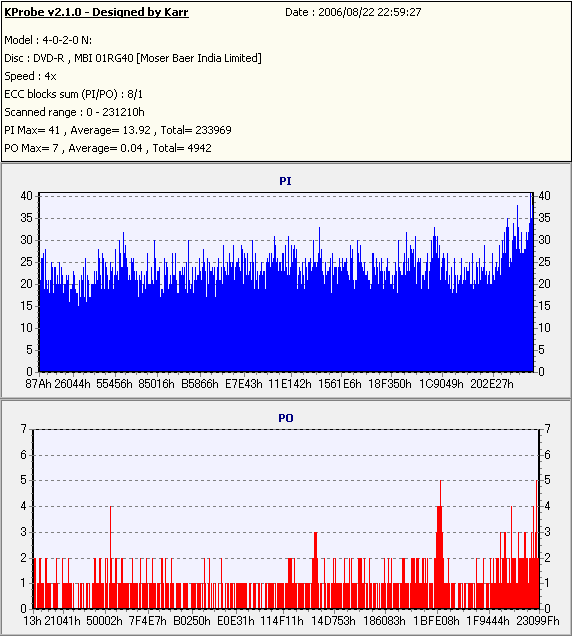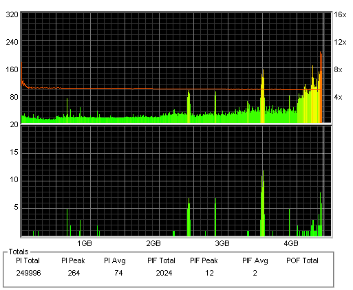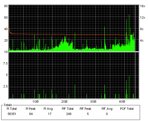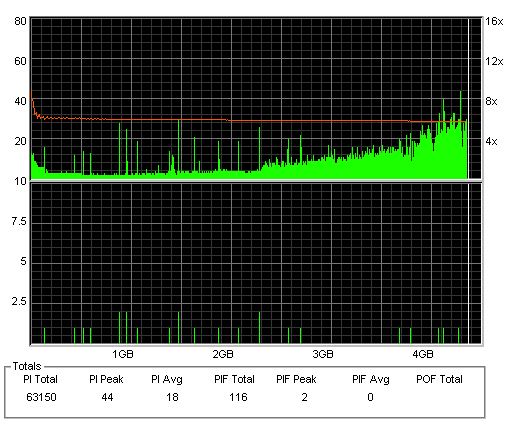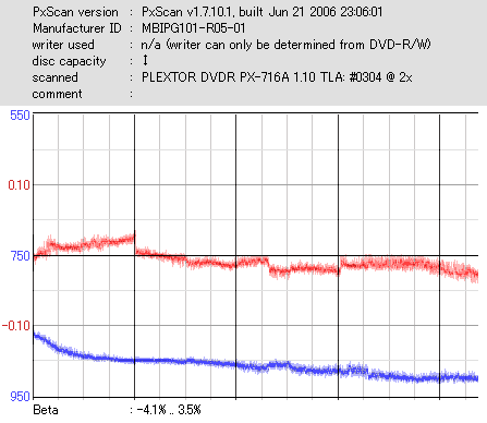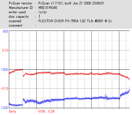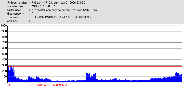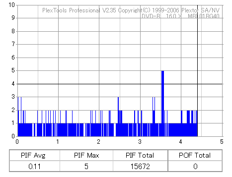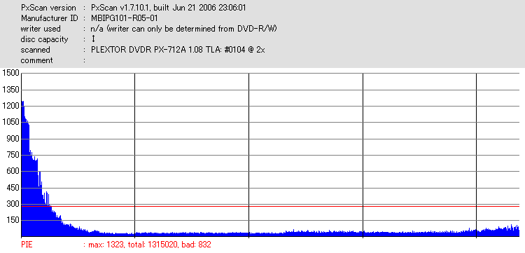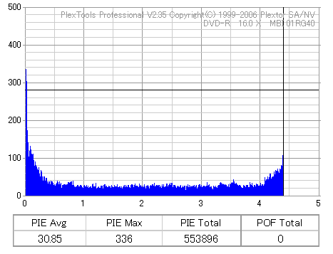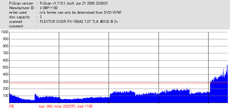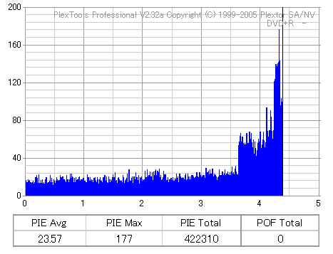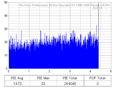 こちらはまあまあ良好な結果なのですが、やはり50枚に対して\13000も出した手前それに見合う結果は見せて欲しかったです。 このドライブと金反射メディアの相性が悪いだけと信じたいものです。 |