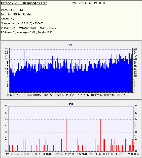 PLEXTOR PX-760A - PX-760AでのPlexTools Q-check PI/POのグラフ - |