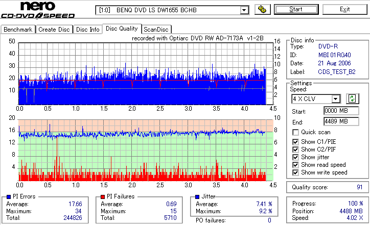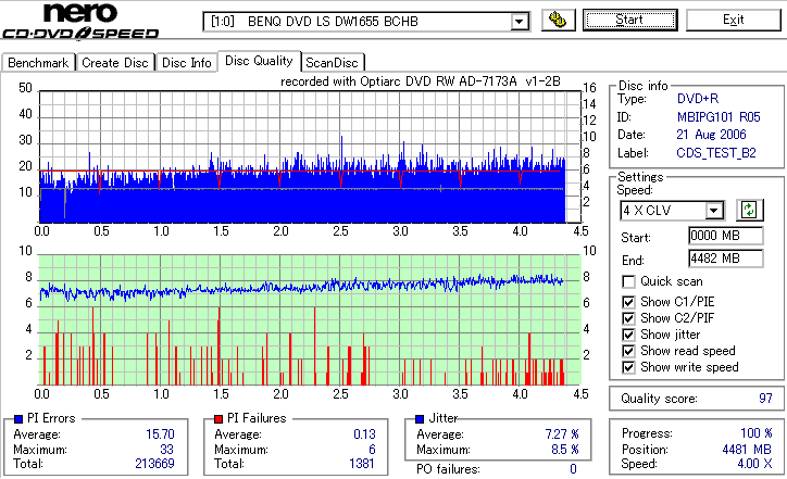 CDSpeed Quality Scan with BenQ DW1655 - DW1655でのCDSpeed 品質テストグラフ - |