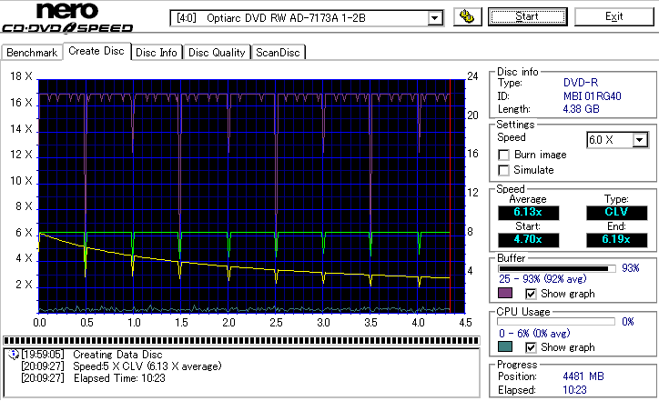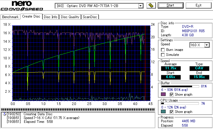 CDSpeed "Create DataDisc" - CDSpeedでのデータディスク作成時の速度グラフ - |