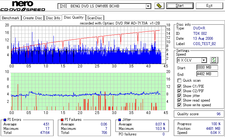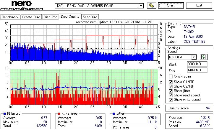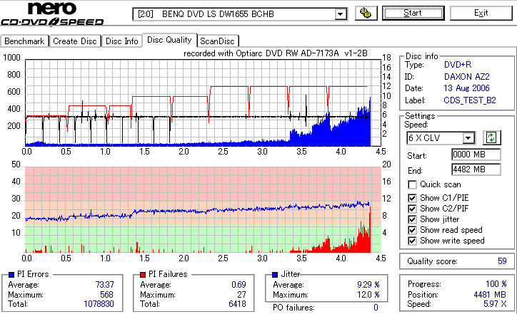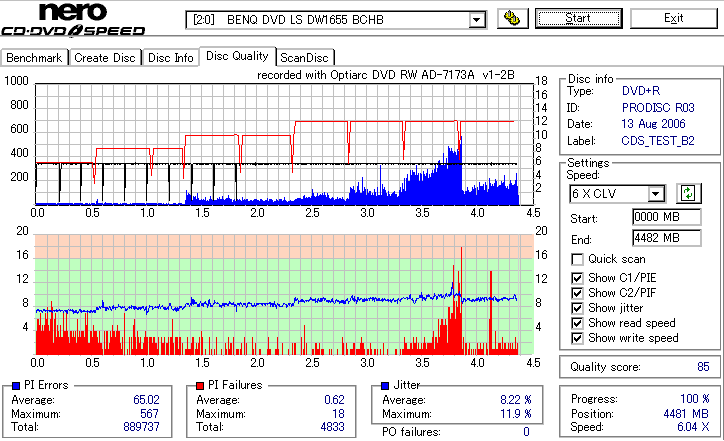 12倍速Z-CLV速度でのオーバースピード記録 ![]() ![]() ![]() 誘電詐称メディアにオーバースピードっていう無謀なことをするとどうなるんだろうと冗談でやってみたんですが。 ・・・外周の方は本家誘電よりも良さそうですね。 |