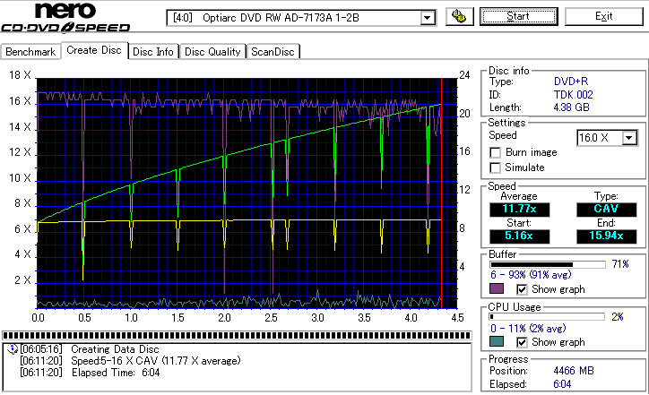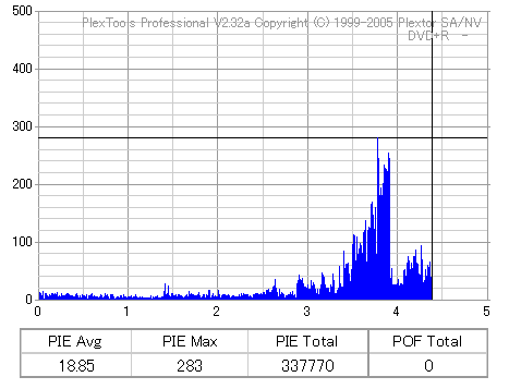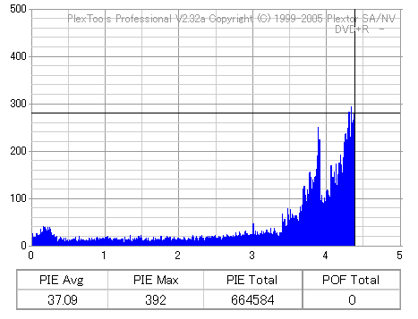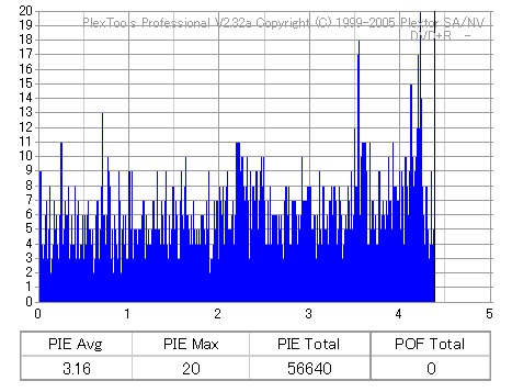 16倍速CAV速度でのオーバースピード記録 ![]() ![]() ![]() 16倍というかなりの超過速度で記録しましたが、結果はとても優秀です。 やっぱりこのドライブも-Rより+Rの方が得意なのかもしれません。 |