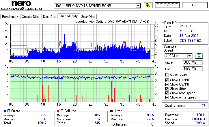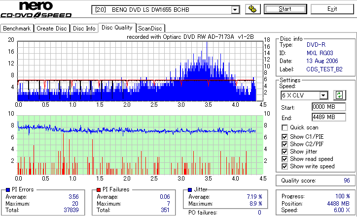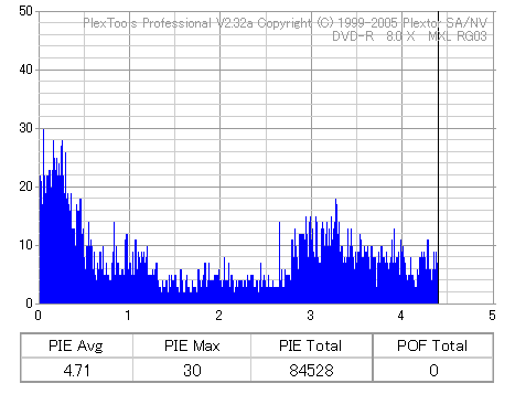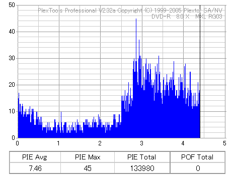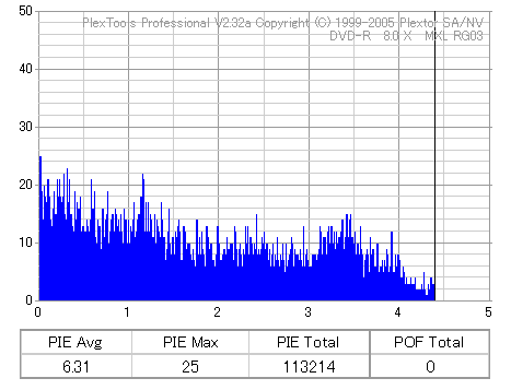 12倍CAV速度でのオーバースピード記録 ![]() ![]() ![]() ちょっと変な山ができてしまっています。しかしまあ、数値的にはまだまだ良好です。 (でも760A計測では逆にPIEは減ってたり・・・) |