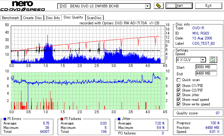6倍速CLV記録速度での記録 ![]() ![]() ![]() 太陽誘電よりPIEは高めですが、良好です。 |