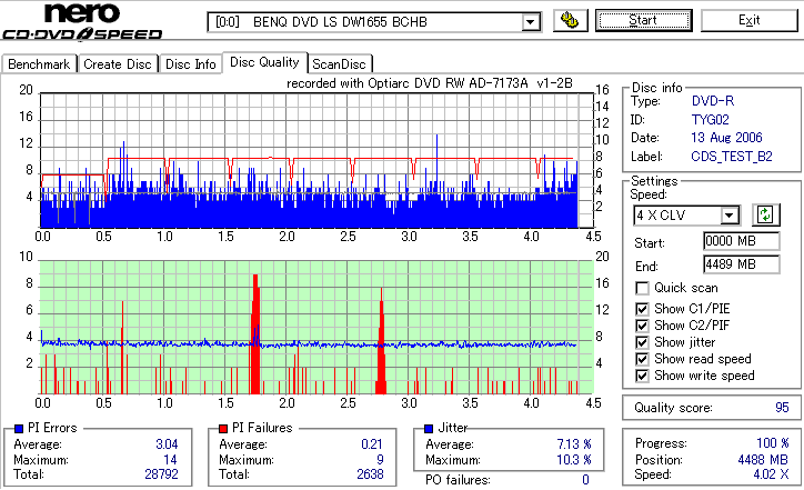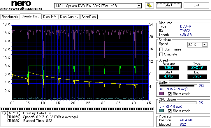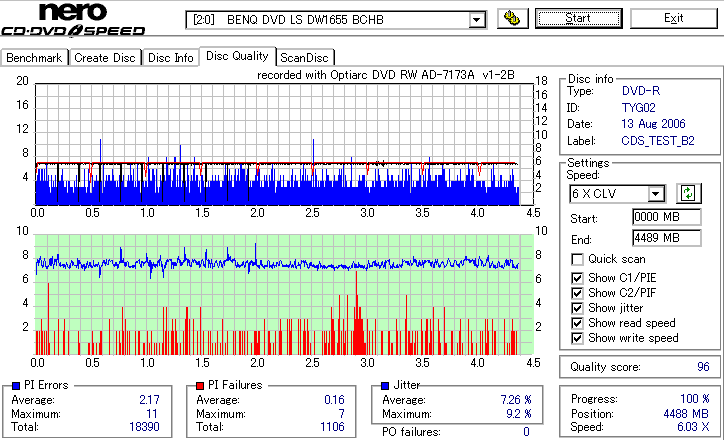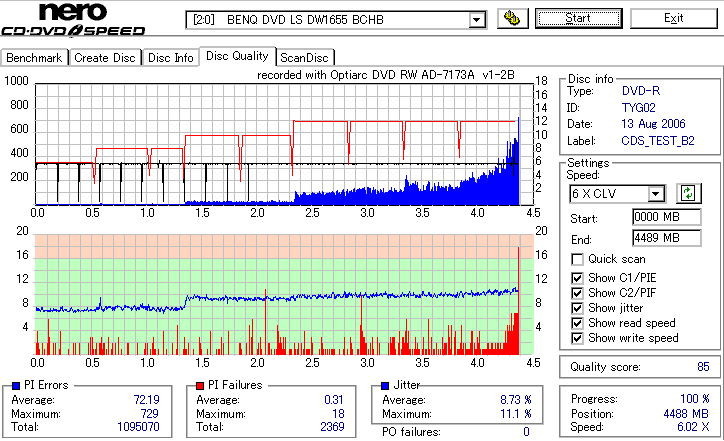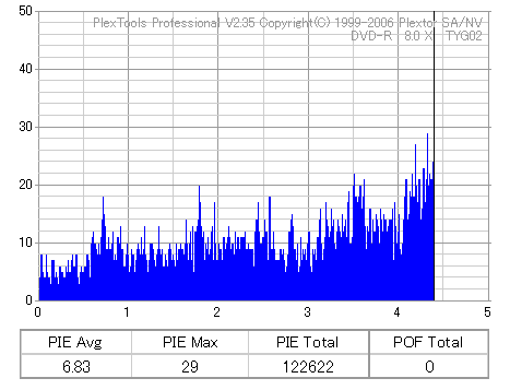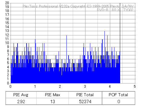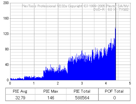 8倍速の定格速度での記録 ![]() ![]() ![]() 6xCLV記録よりもややエラーが増加しています。 太陽誘電の中では至って平凡な結果ですが、十分問題なく使えるでしょう。 |