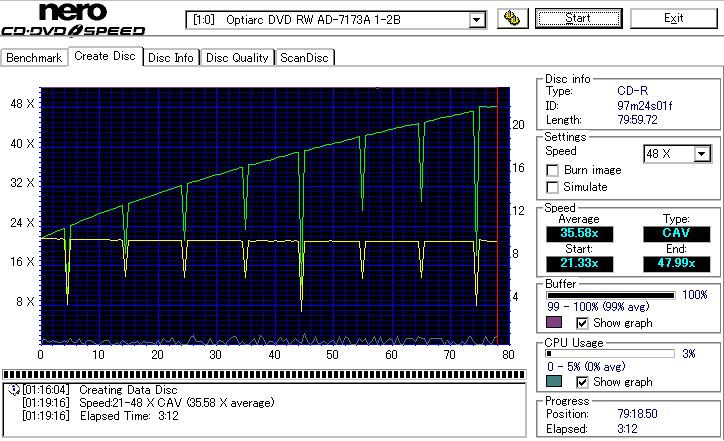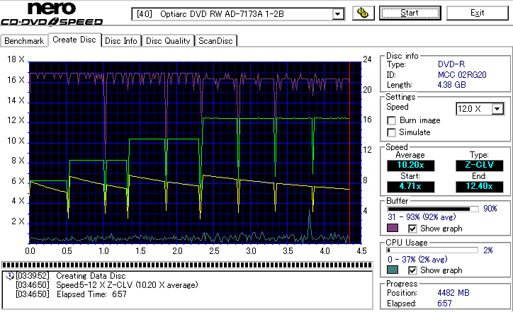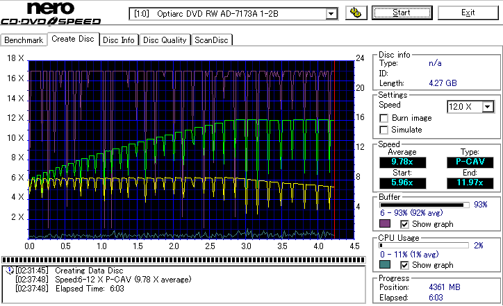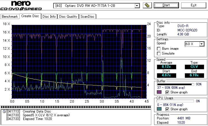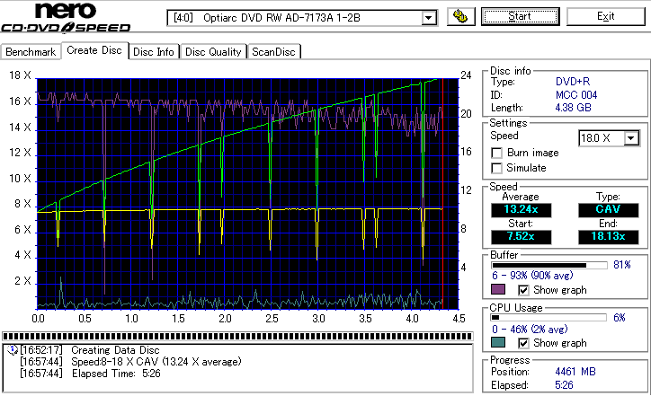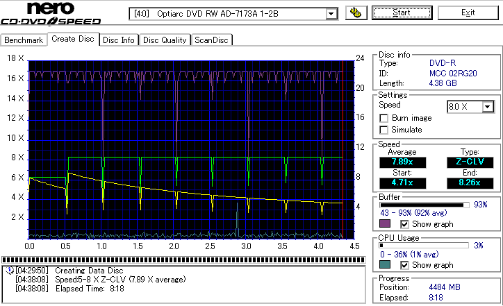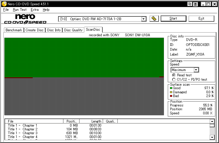 恒例の在りし日の悪夢・非AZO色素の旧OPTO4倍を用いたリードテストです。 実験に用いたディスクは、こちらのサンプルディスクと全く同一のものです。 詳しくは該当ページを参照して比較してみてください。 最高速でのリードエラーテスト ![]() 最低速(1x)でのリードエラーテスト ![]() 読みの強さは3570Aと同じ程度でしょうか。変に低速で読まないほうが良さそうです。 |