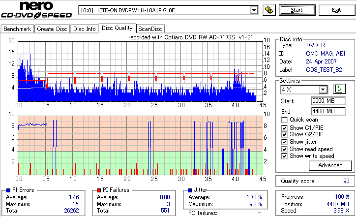 - BenQドライブでのCDSpeed 品質テストグラフ -