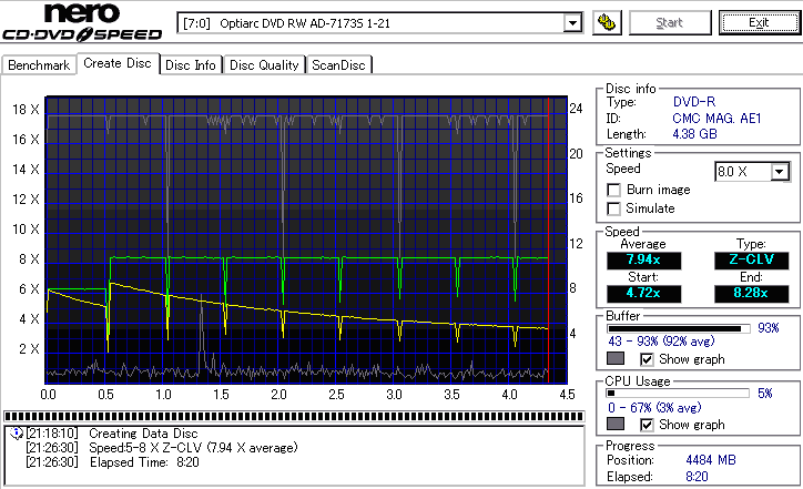 - CDSpeedでのデータディスク作成時の速度グラフ -