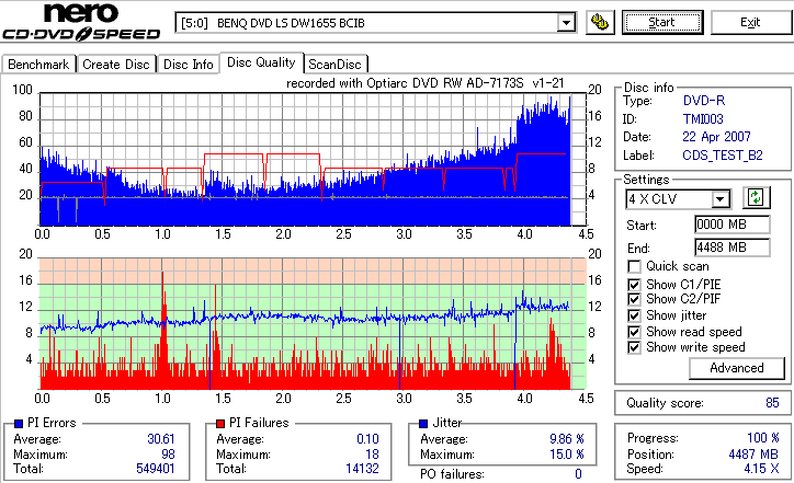 - BenQドライブでのCDSpeed 品質テストグラフ -