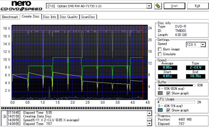 - CDSpeedでのデータディスク作成時の速度グラフ -