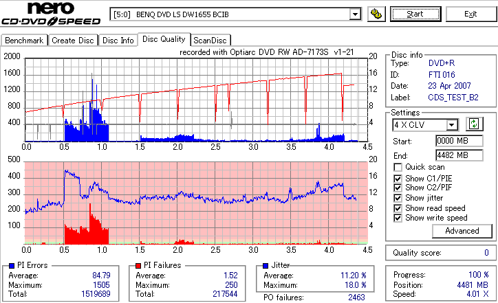 CDSpeed Quality Scan with BenQ DWxxxx