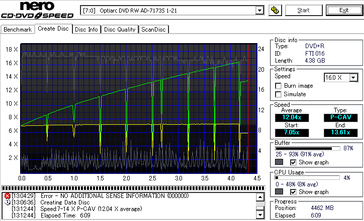 - CDSpeedでのデータディスク作成時の速度グラフ -
