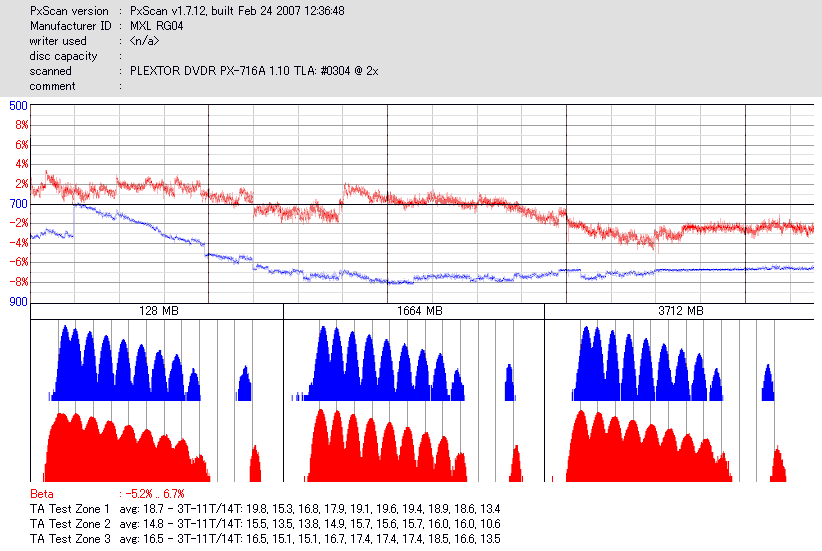 - PX-760AでのPlexTools Q-check PI/POのグラフ -