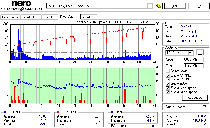 CDSpeed Quality Scan with BenQ DWxxxx