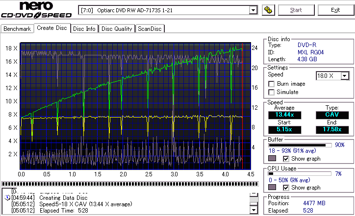 - CDSpeedでのデータディスク作成時の速度グラフ -