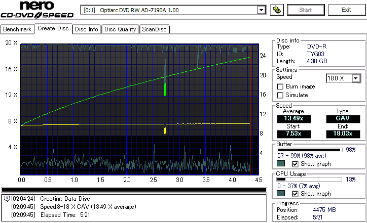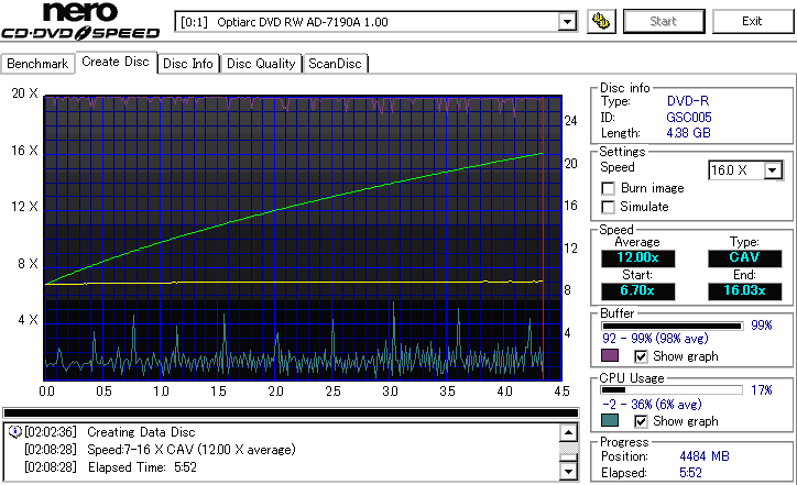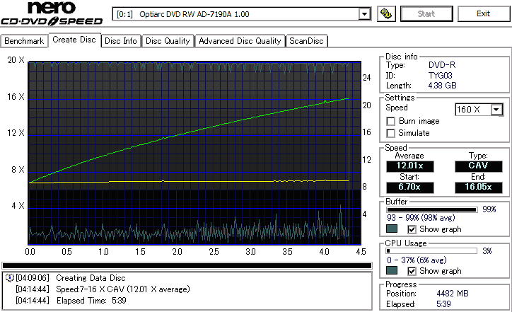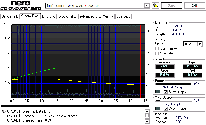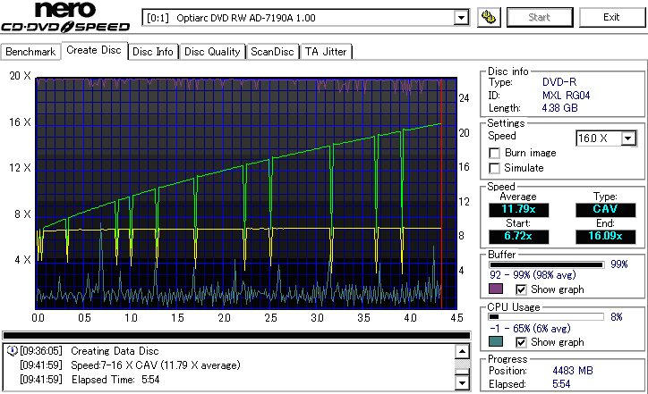 誘電16倍については結構高速で焼いても安定しています。いっそ20倍速でも問題なさそうな気がします。