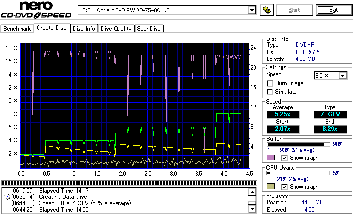- CDSpeedでのデータディスク作成時の速度グラフ -