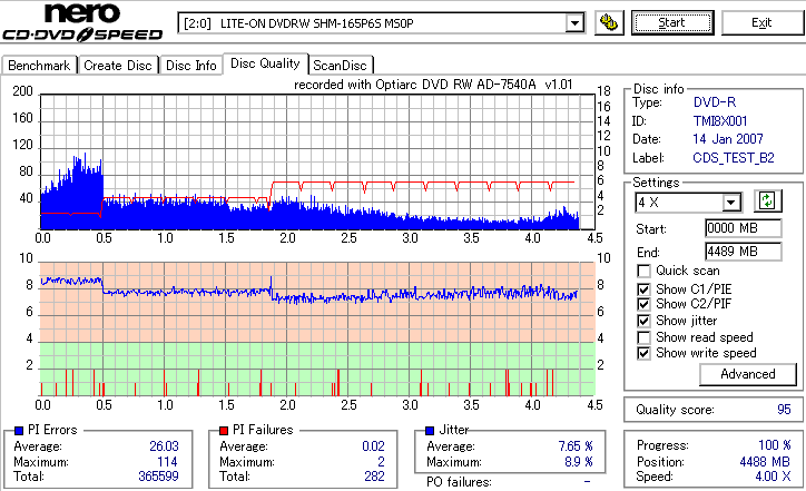 PlexTools Professional Q-Check PI/PO with PLEXTOR PX-760A - PX-760AでのPlexTools Q-check PI/POのグラフ - |