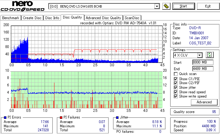CDSpeed Quality Scan with BenQ DWxxxx - BenQドライブでのCDSpeed 品質テストグラフ - |