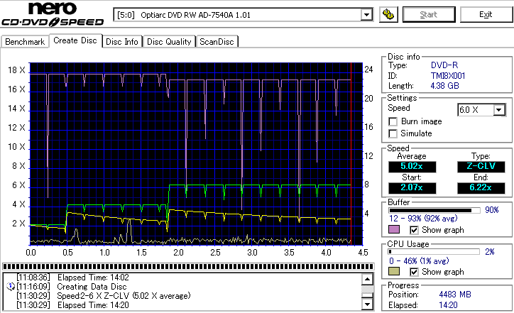 CDSpeed "Create DataDisc" - CDSpeedでのデータディスク作成時の速度グラフ - |