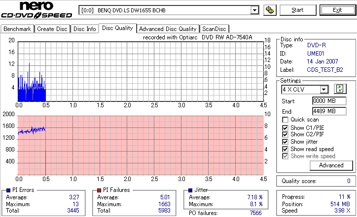 CDSpeed Quality Scan with BenQ DWxxxx