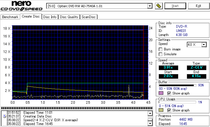- CDSpeedでのデータディスク作成時の速度グラフ -