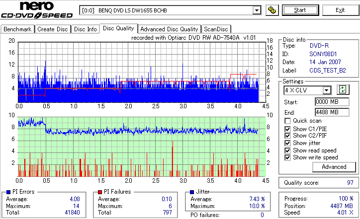 - BenQドライブでのCDSpeed 品質テストグラフ -