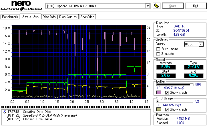 - CDSpeedでのデータディスク作成時の速度グラフ -
