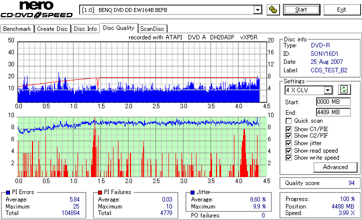 CDSpeed Quality Scan with BenQ DWxxxx
