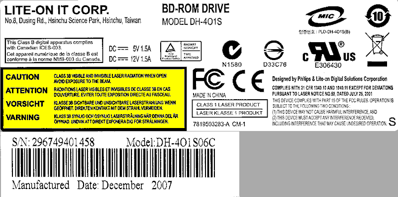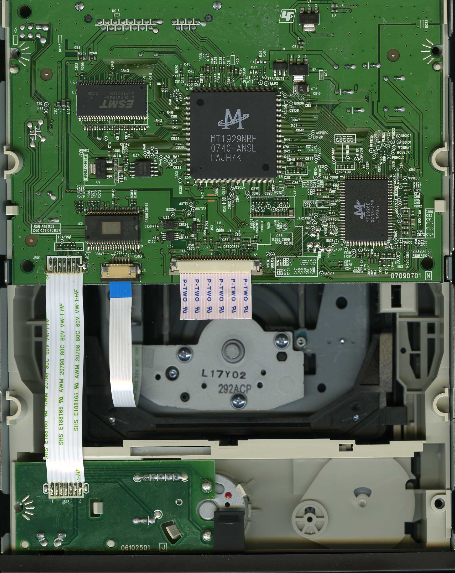 ![]() ベゼルデザインは非常に特殊な形状で、LITEONにしては結構質感も良い素材を使ってます。 イジェクトボタン部分がポイント。 ![]() ![]() ラベルと基盤。 2007年の12月には製造が開始されてます。当然のように中国製。 ![]() メインチップはMediaTek社のMT1929NBE。 この他にサブチップとしてMT1926Eが載ってるのも確認できます。 |