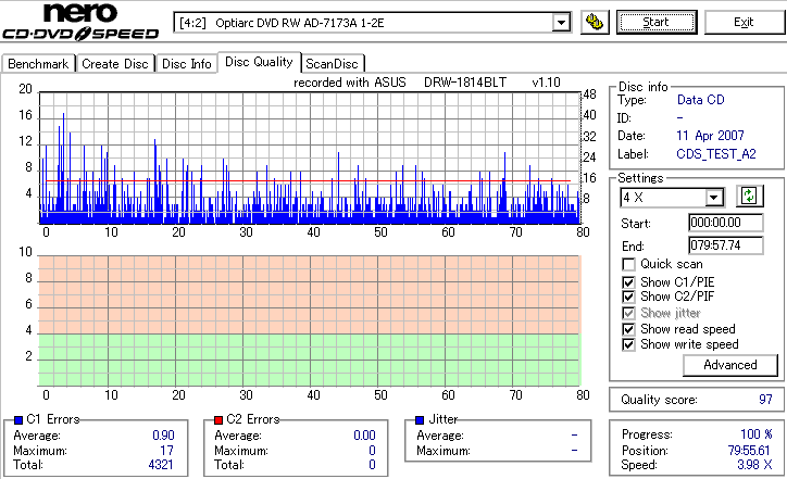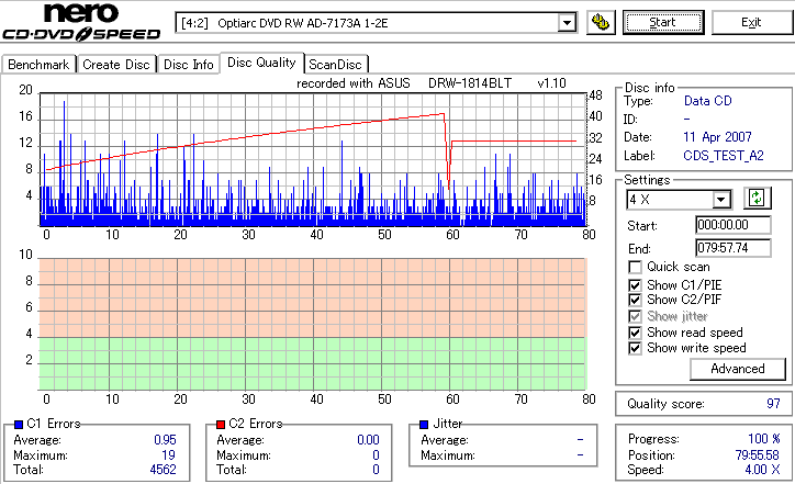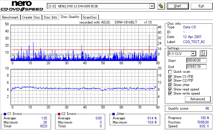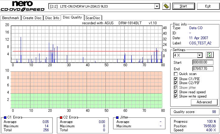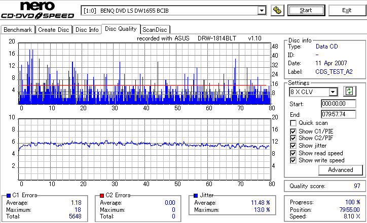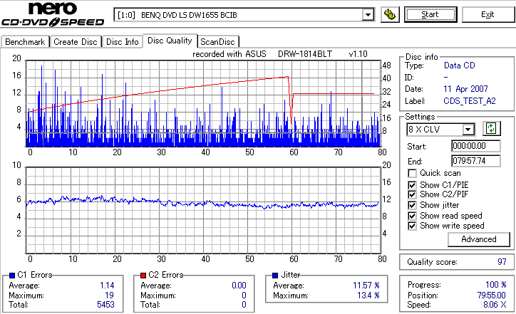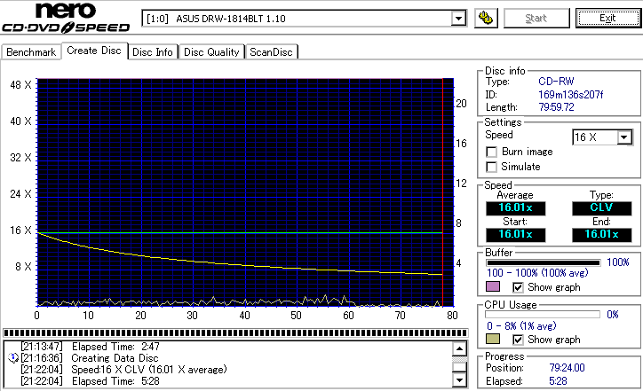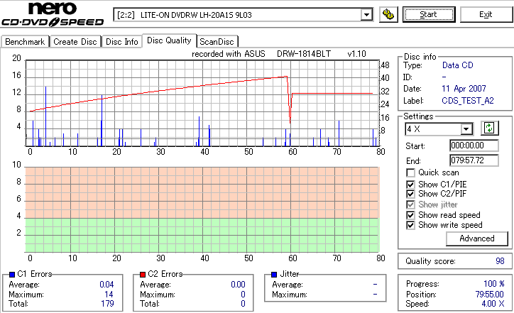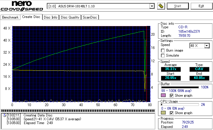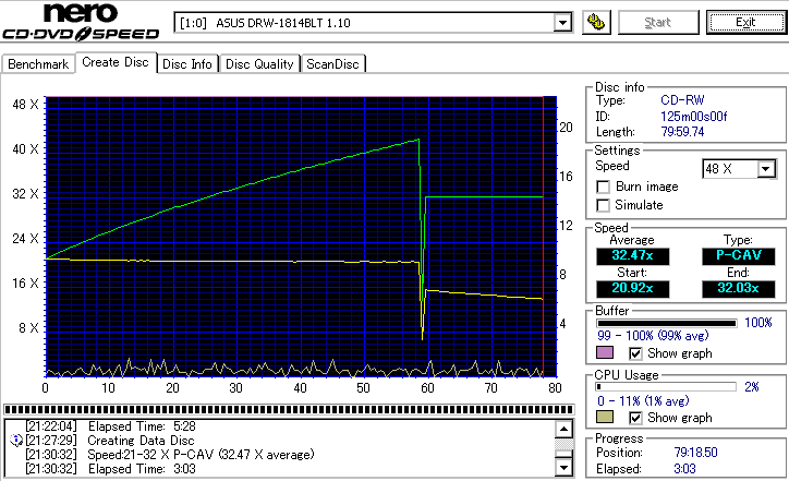 DRW-1814BLTのCD-R焼き性能は特に注目すべき長所はなさそうです。 高速焼きはあまり安定せず(つっても高速焼きが安定するドライブなんて数えるほどしかありませんが) CLV最大速度となる16倍速焼きではとりあえずそこそこ程度に焼けます。 NECやPioneerのドライブと同レベルって言うと聞こえ悪いですが、最近のDVDドライブなんてプレクやLGを除いてこんなもんです。 |
