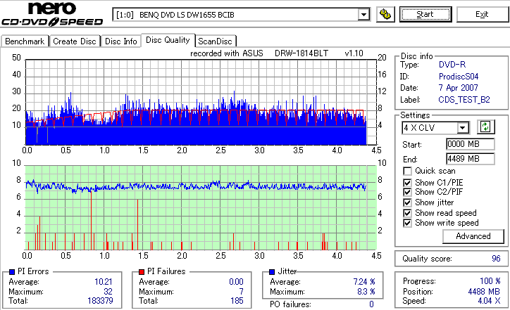 CDSpeed Quality Scan with BenQ DWxxxx - BenQドライブでのCDSpeed 品質テストグラフ - |