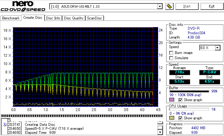 CDSpeed "Create DataDisc" - CDSpeedでのデータディスク作成時の速度グラフ - |