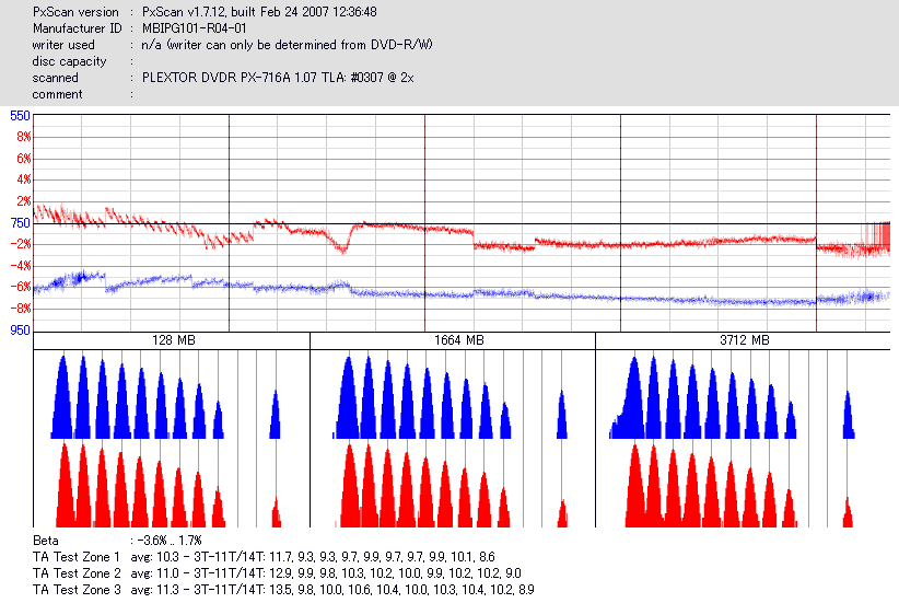 - PX-760AでのPlexTools Q-check PI/POのグラフ -