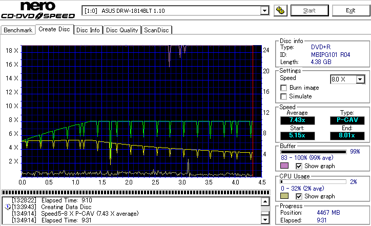 - CDSpeedでのデータディスク作成時の速度グラフ -