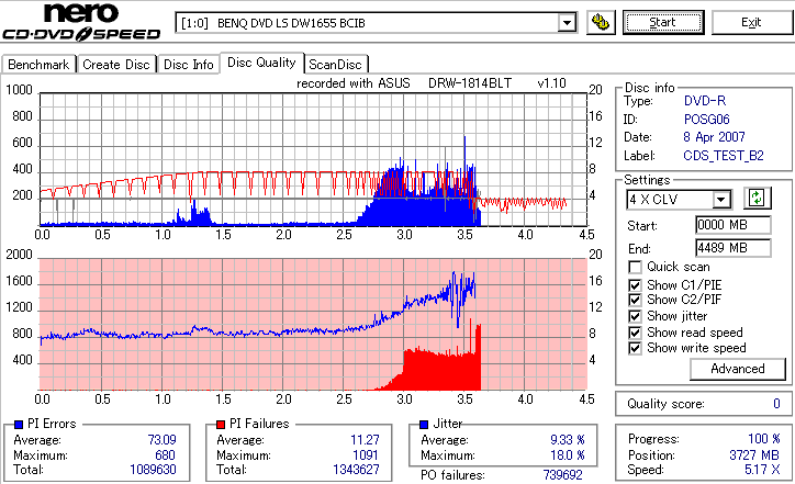 CDSpeed Quality Scan with BenQ DWxxxx - BenQドライブでのCDSpeed 品質テストグラフ - |