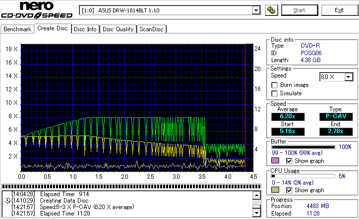 CDSpeed "Create DataDisc" - CDSpeedでのデータディスク作成時の速度グラフ - |