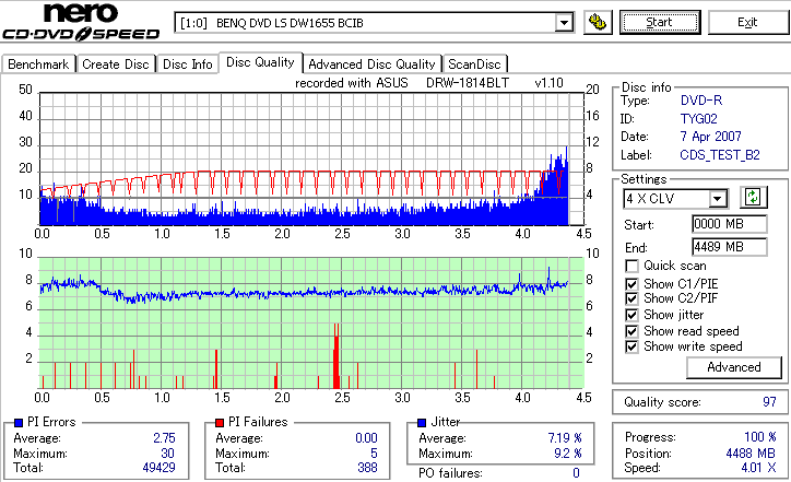 CDSpeed Quality Scan with BenQ DWxxxx - BenQドライブでのCDSpeed 品質テストグラフ - |