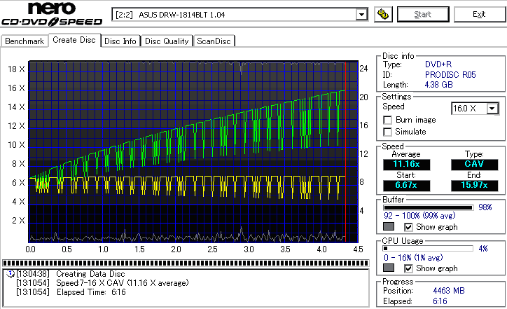 CDSpeed "Create DataDisc" - CDSpeedでのデータディスク作成時の速度グラフ - |