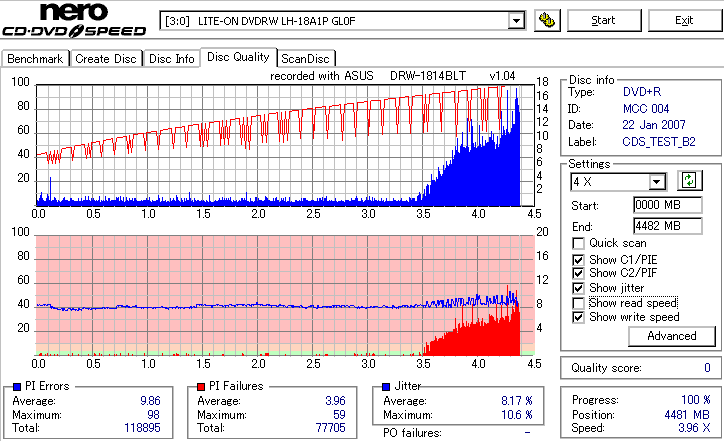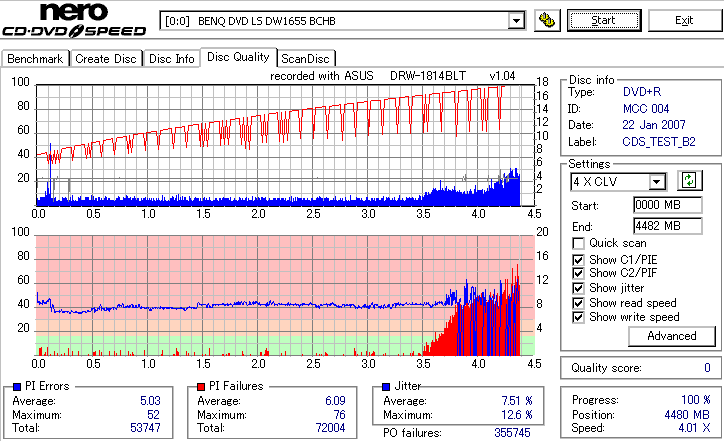 CDSpeed Quality Scan with BenQ DWxxxx - BenQドライブでのCDSpeed 品質テストグラフ - |