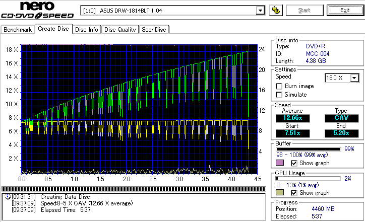 CDSpeed "Create DataDisc" - CDSpeedでのデータディスク作成時の速度グラフ - |