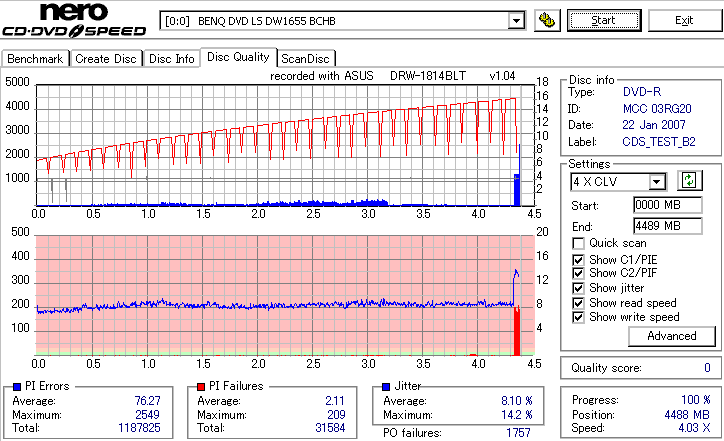 ASUSTek Computers DRW-2014L1T Burn Quality Test