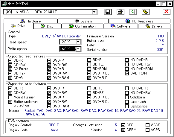 Nero InfoToolでのドライブ情報 ![]() |