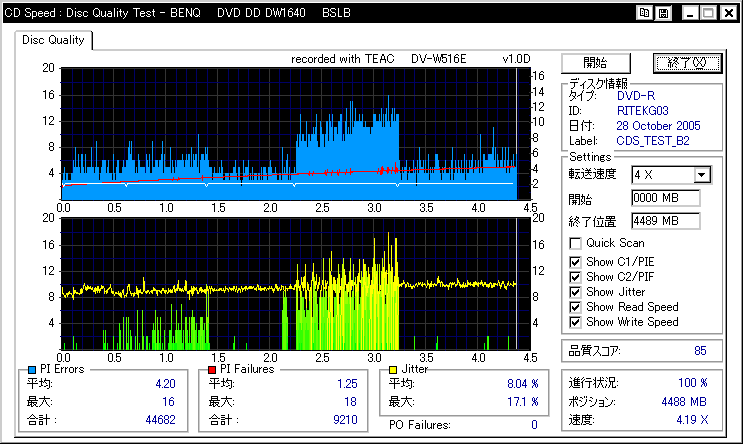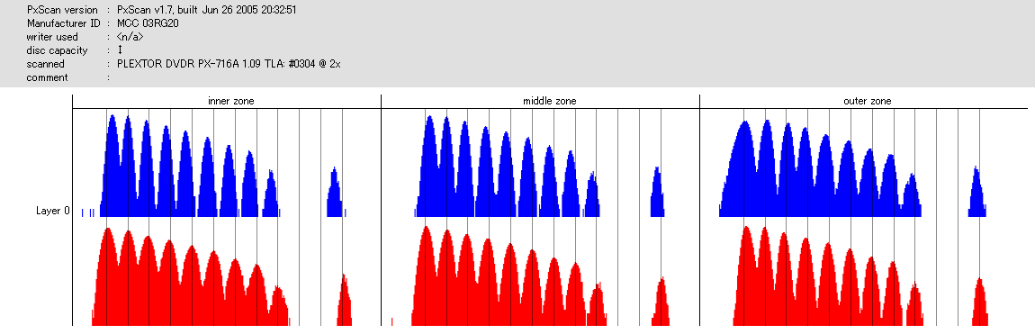 その他のメディア総評 やはり1.0Cに比べても-Rの焼きが安定したようで、1640計測で良い結果が出るようになりました。 次ファームは多分新規メディア対応でしょうし、そろそろきのってもいいと思います。 |