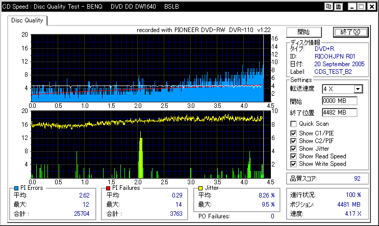 4x Brand-A 総評 国産群は全く問題ない様子。TDKが悪い結果になってますが、ND-3500Aでも内周が微妙だったので 恐らくハズレメディアなんでしょう。 |