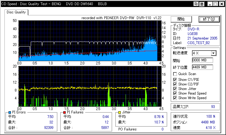 8x Brand-C 総評 あまりメジャーではないのですが、Infomediaとの相性は結構良い模様。 あと、TOPが意外にもそこそこの結果。 しかしやはりpioneerはプレクやNEC、更に言うとLGと比較しても対応メディア少ないですねぇ。 焼き品質高い代わりに焼くものも厳選しなきゃ駄目っぽいです。 謎メディアフリークとしては、そこが唯一不満。 |