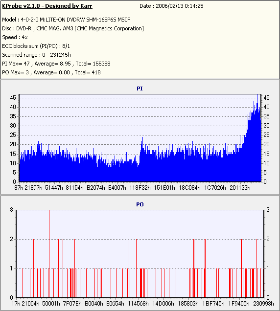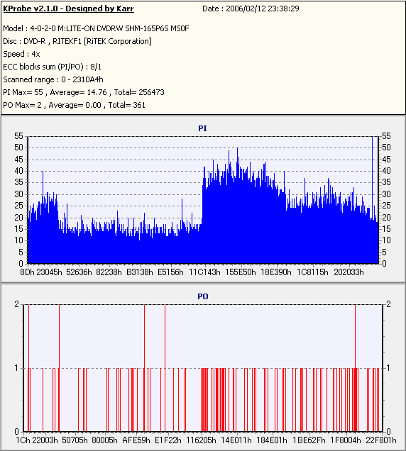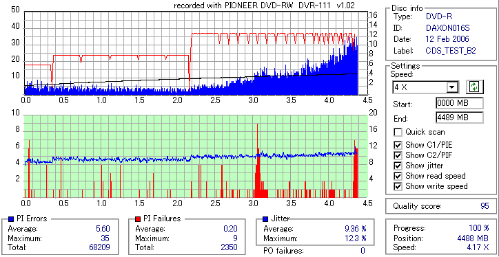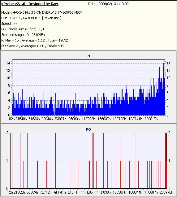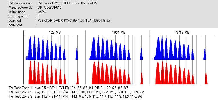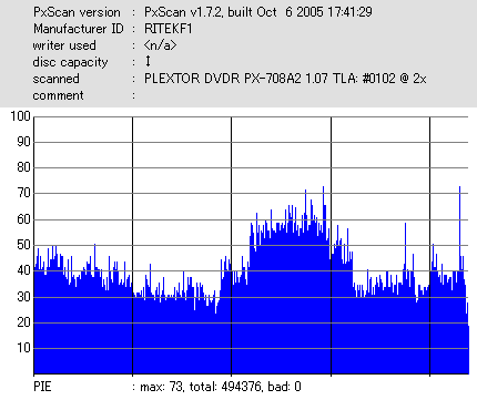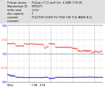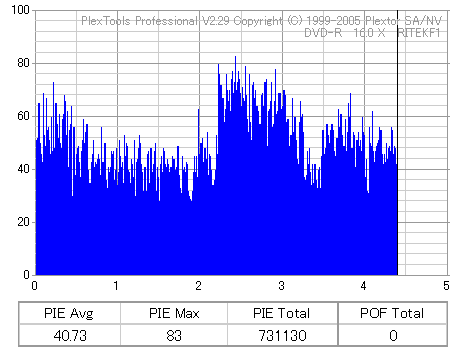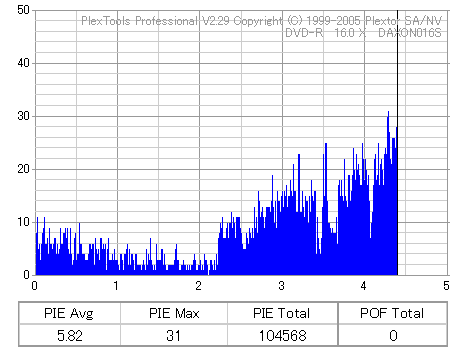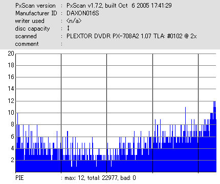 Group.Bでは主に台湾の主要生産企業のディスクについて扱います。 DVR-111と比べて12x制限されてるディスクが多いですね・・・ 焼き品質的には問題のあるものは1つもなく、かなり良好な結果だと思います。 |