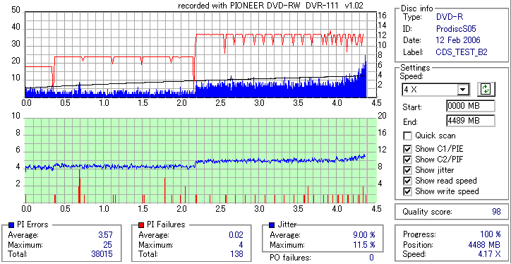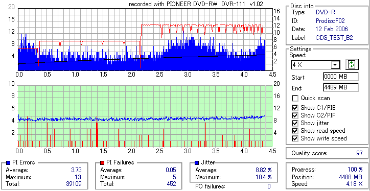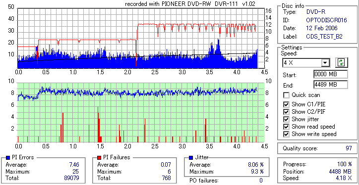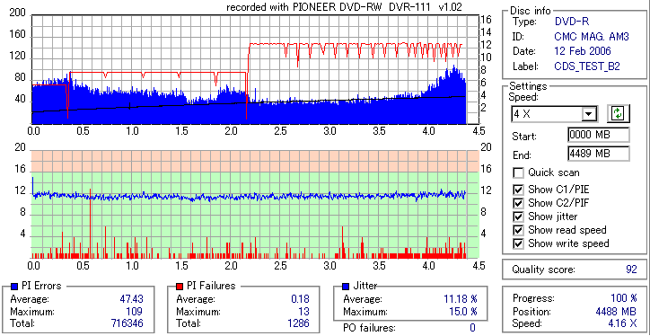 pioneer DVD-RW/+RW/RAM SuperMulti 16x/5x DVR-111 -DVD-R Burn Quality Test- |