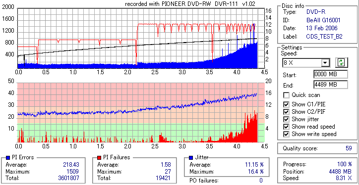 pioneer DVD-RW/+RW/RAM SuperMulti 16x/5x DVR-111 -DVD-R Burn Quality Test- |