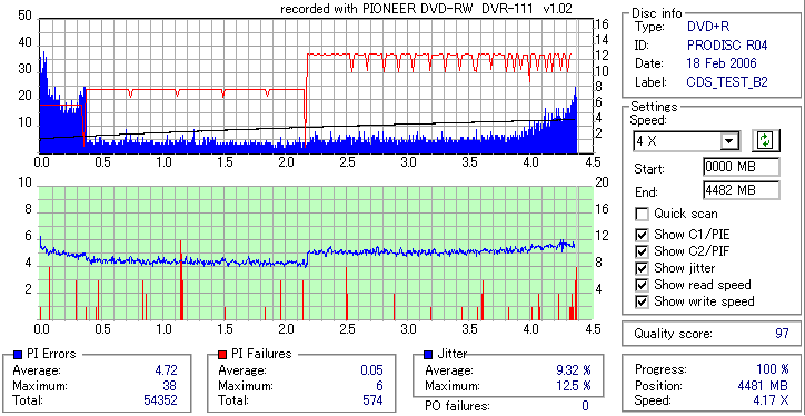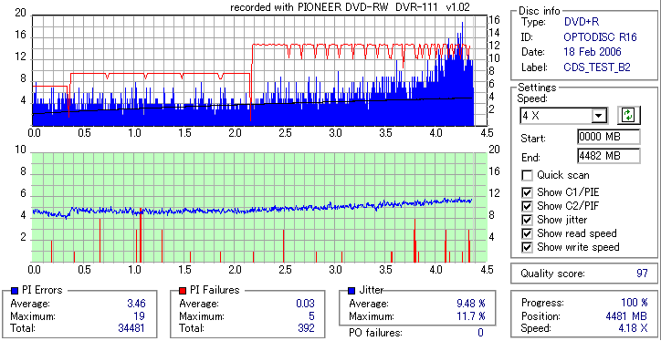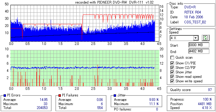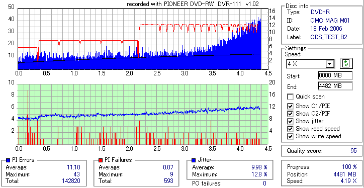 pioneer DVD-RW/+RW/RAM SuperMulti 16x/5x DVR-111 -DVD+R Burn Quality Test- |